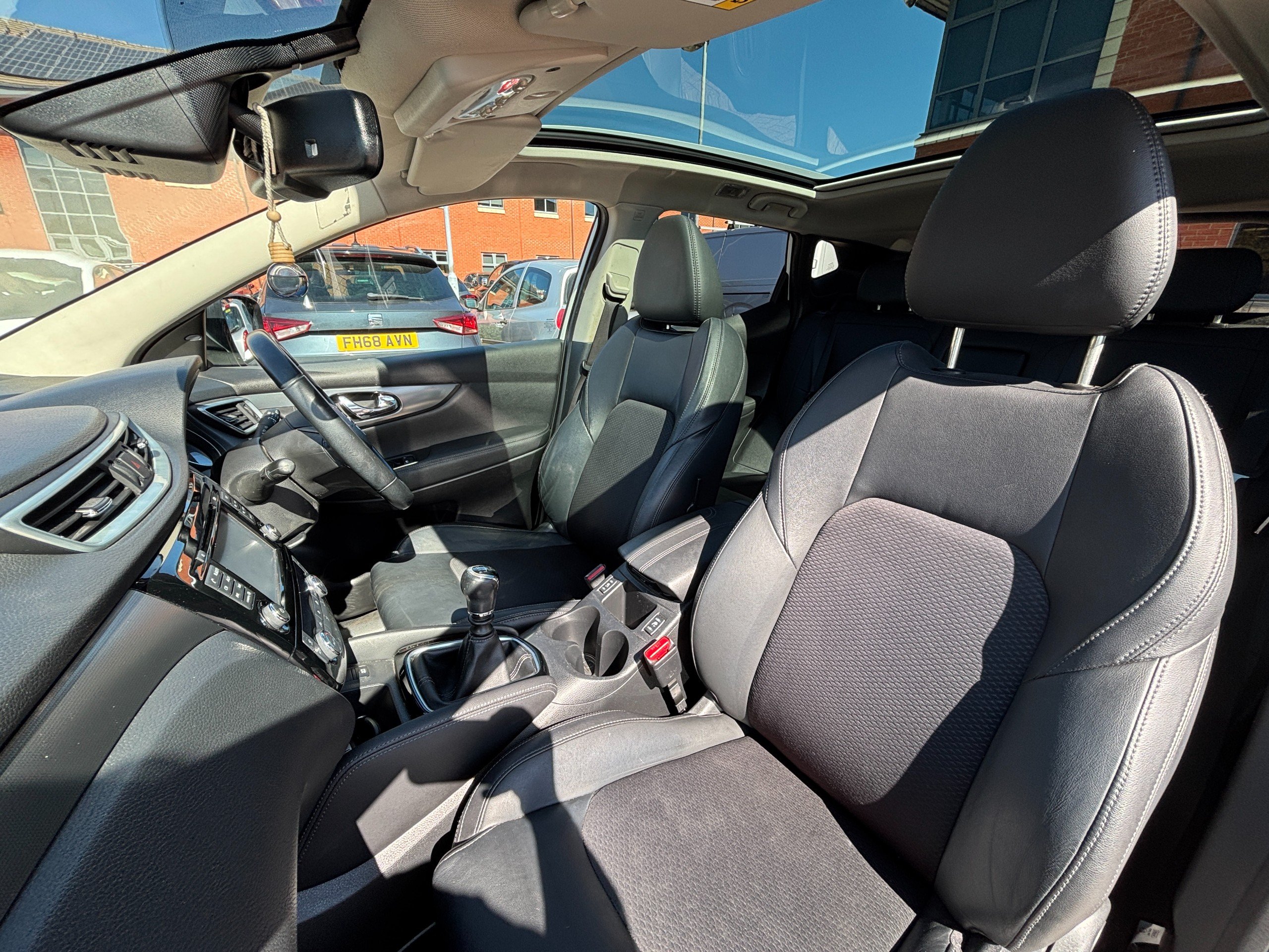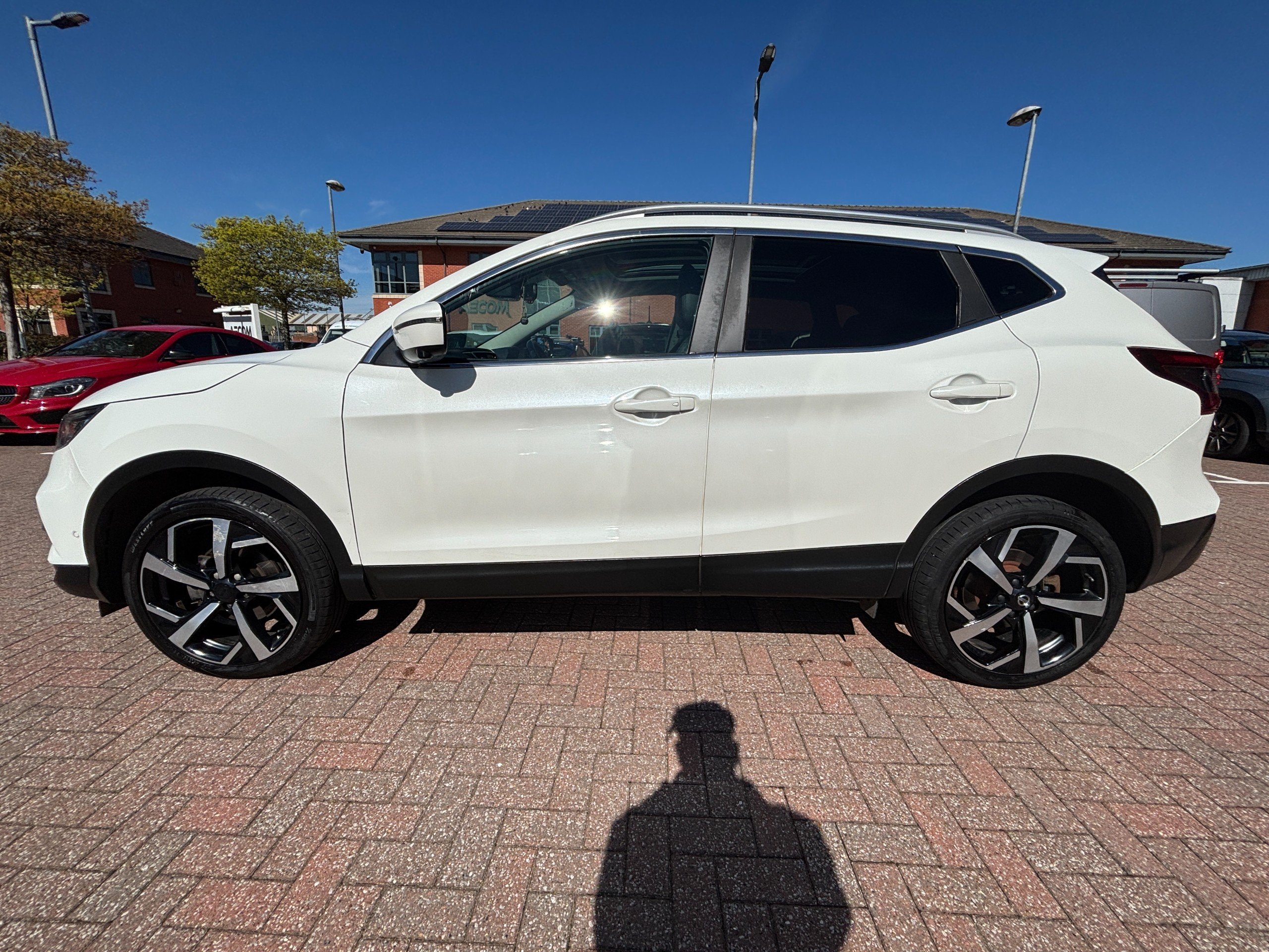 This 2017 Nissan Qashqai 1.5 dCi Tekna SUV with 74,000 miles on the clock is a reliable diesel vehicle that seats 5 people with ease and boasts 5 doors for convenient access. It is ULEZ compliant, making it a suitable option for city driving. The car comes with a manual transmission and Euro 6 standard engine, offering 110 ps of power. The exterior is adorned with 19-inch alloy wheels, body-colored door mirrors and handles, as well as a chrome glass surround. Additionally, the electric auto-folding door mirrors add to the convenience and luxury of this SUV.